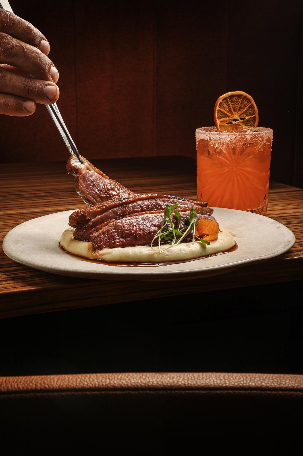 Para os amantes de pratos reconfortantes, o Prensado de Mandioca Crocante com Moqueca de Camarão (€16,50) oferece uma base crocante de mandioca prensada, acompanhada de moqueca cremosa de camarão, rica em leite de coco e azeite de dendê. Já o Magret de Pato com Molho de Tangerina e Miso (€33,50) apresenta o peito de pato grelhado servido com mousseline de batata e um molho que combina a doçura cítrica da tangerina com a profundidade do miso.