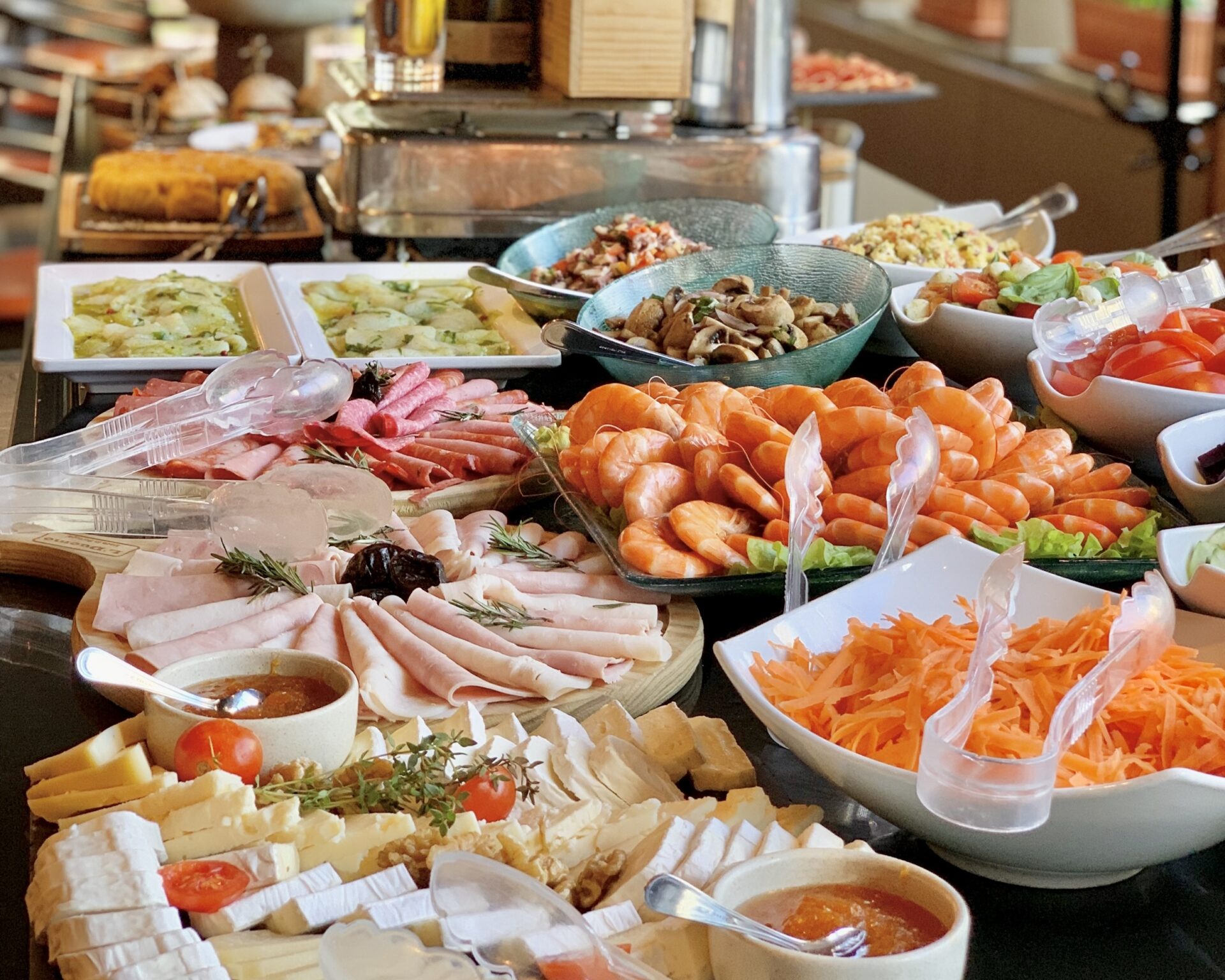Para os fãs do pequeno-almoço, destacam-se os ovos – mexidos ou estrelados -, bacon e cogumelos salteados, tábuas de queijos e enchidos, pães e croissants, compotas, iogurtes, fruta e, claro, o ex-líbris de qualquer brunch: as panquecas. Numa viagem pelos sabores da cozinha mediterrânea e a encher a mesa do SoMos de ainda mais cor (e sabor), estão também focaccias, quiches, trouxas de alheira, camarões e saladas – de quinoa, beterraba e frutos vermelhos, Caprese, cogumelos e chalota, ou polvo. Somam-se ainda, e também disponíveis em modo buffet, as combinações do Sanduíche Bar: Rosbife com rúcula e molho César, Salmão fumado com alcaparras e crème fraîche, Presunto com tapenade, e Tramezzini de guacamole e vegetais.